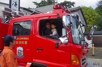 松前町が主催する第9回松前城下マグロまつりへ参加し、訓練用の水消火器を使用した放水、救急用ダミーでの応急手当を体験してもらい町民への火災予防・応急手当の普及啓発を行いました。